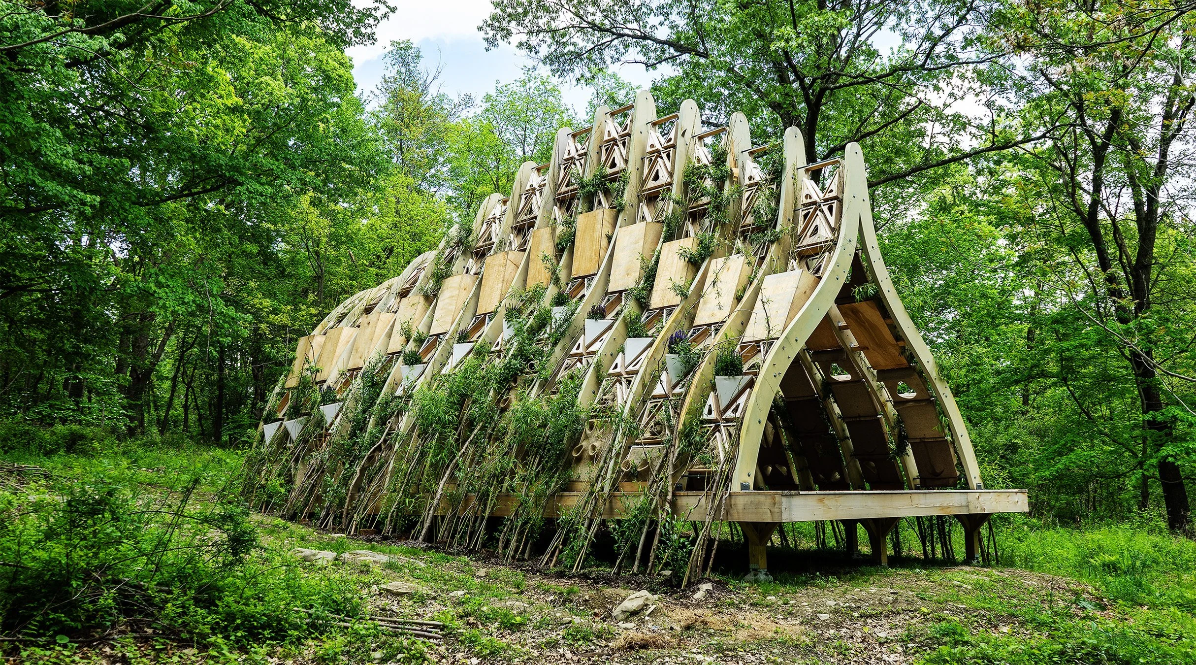 A terrestrial reef and grafted living tree structure. Shared by all kingdoms of life, this multispecies habitat combines indigenous tree-grafting techniques with computationally designed scaffolds.
